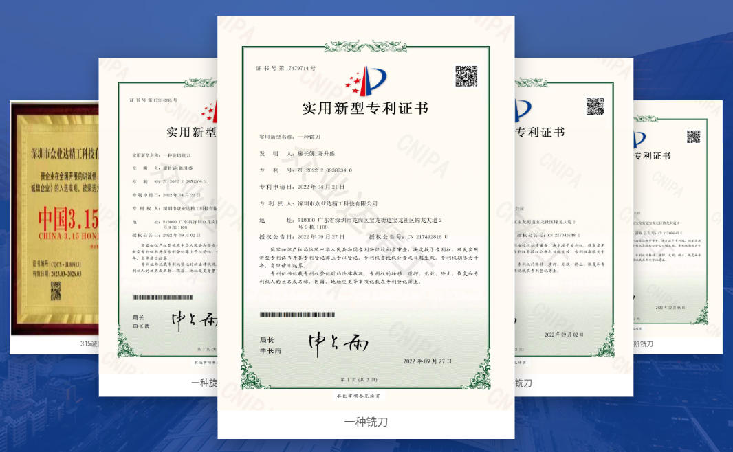 Táirgeann Zhongyeda gearrthóirí muilleoireachta cairbíde soladacha, druileanna, uirlisí gearrtha greanta, uirlisí táthúcháin, srl. Úsáidtear na táirgí go príomha i múnlaí, déantúsaíocht thionsclaíoch, leictreonaic, táirgí digiteacha, ceardaíocht, troscán, uirlisí ceoil, tionscal adhmaid, fógraíocht agus tionscail eile. Tá na táirgí go léir oiriúnach le haghaidh uirlisí meaisín rialaithe uimhriúil baile agus eachtrannach, ionaid meaisínithe agus meaisíní greanta.